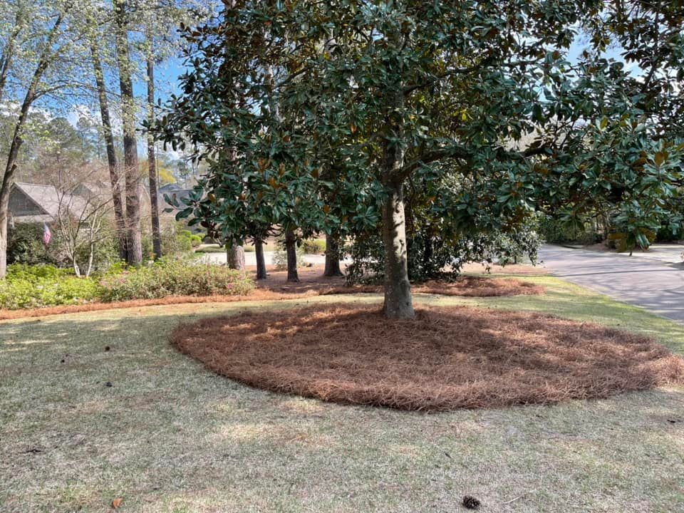 Trimmendous Lawn Care installs mulch and pine straw for residential and commercial properties across Augusta, Georgia where landscape beds need better moisture retention, weed control, and a finished appearance. You may have beds where the soil is visible between plants, or areas where weeds sprout every few weeks despite your efforts to pull them. The service spreads a layer of organic material that insulates plant roots, slows evaporation, and creates a clean border between turf and plantings.